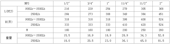 鍛鋼自密封截止閥尺寸(mm)和重量(kg)