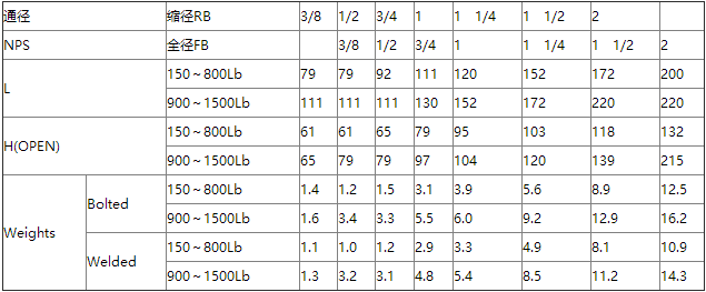 H11H、H61H鍛鋼止回閥尺寸和重量表