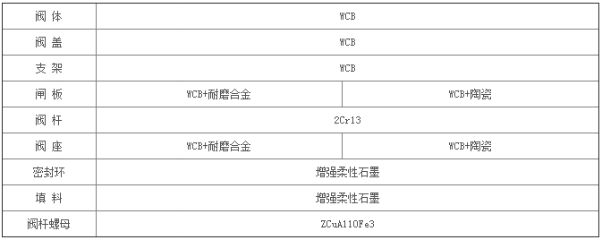 法蘭排渣閘閥主要零件的材料說明: