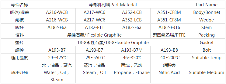 不銹鋼美標閘閥Z41W-150LB材料列表Material List