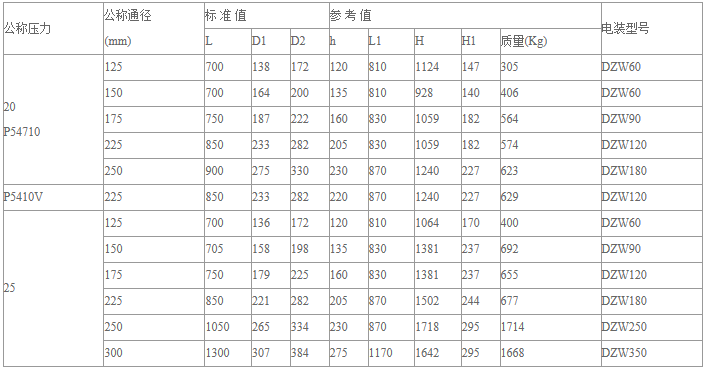 Z961Y電動焊接閘閥主要外形尺寸、連接尺寸及重量: