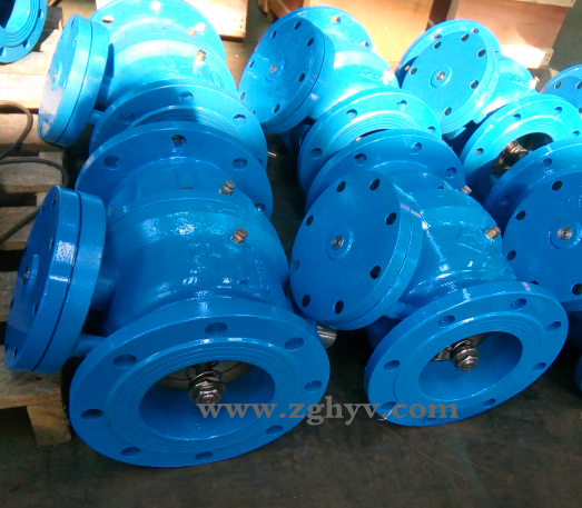 正向流動,進口止回和出口止回裝置開啟,介質(zhì)從進口端流經(jīng)進口止回閥瓣口、中間腔、出口止回閥瓣口,流向出口端;此時,進口壓力P1>中間腔的壓力P2>出口壓力P3,使排水器關(guān)閉;當(dāng)管道中的流速V=2米/秒時,流經(jīng)該閥的壓力損失h約為2-3米水柱。