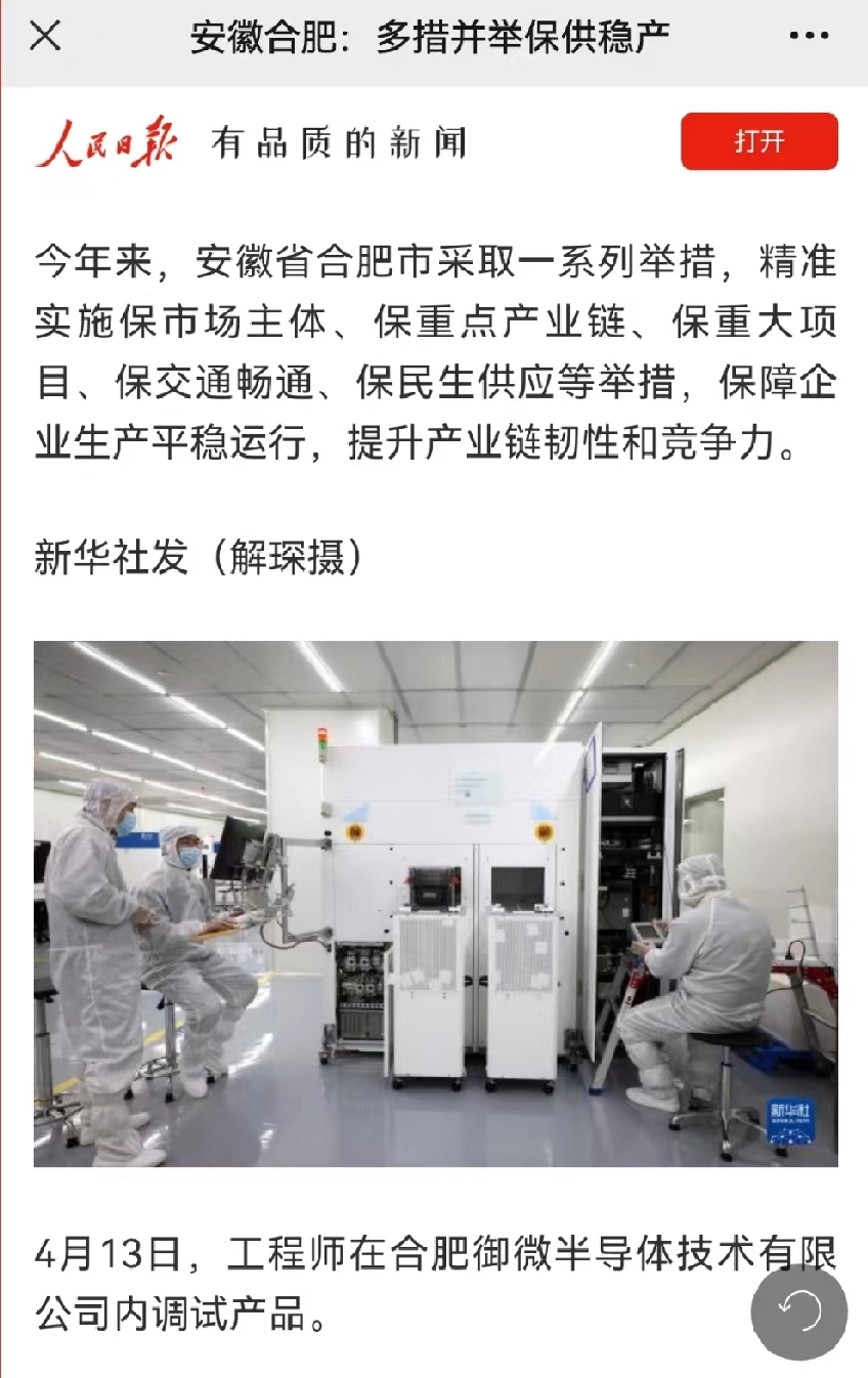 人民日報、新華社:御微半導(dǎo)體多措并舉保供穩(wěn)產(chǎn)